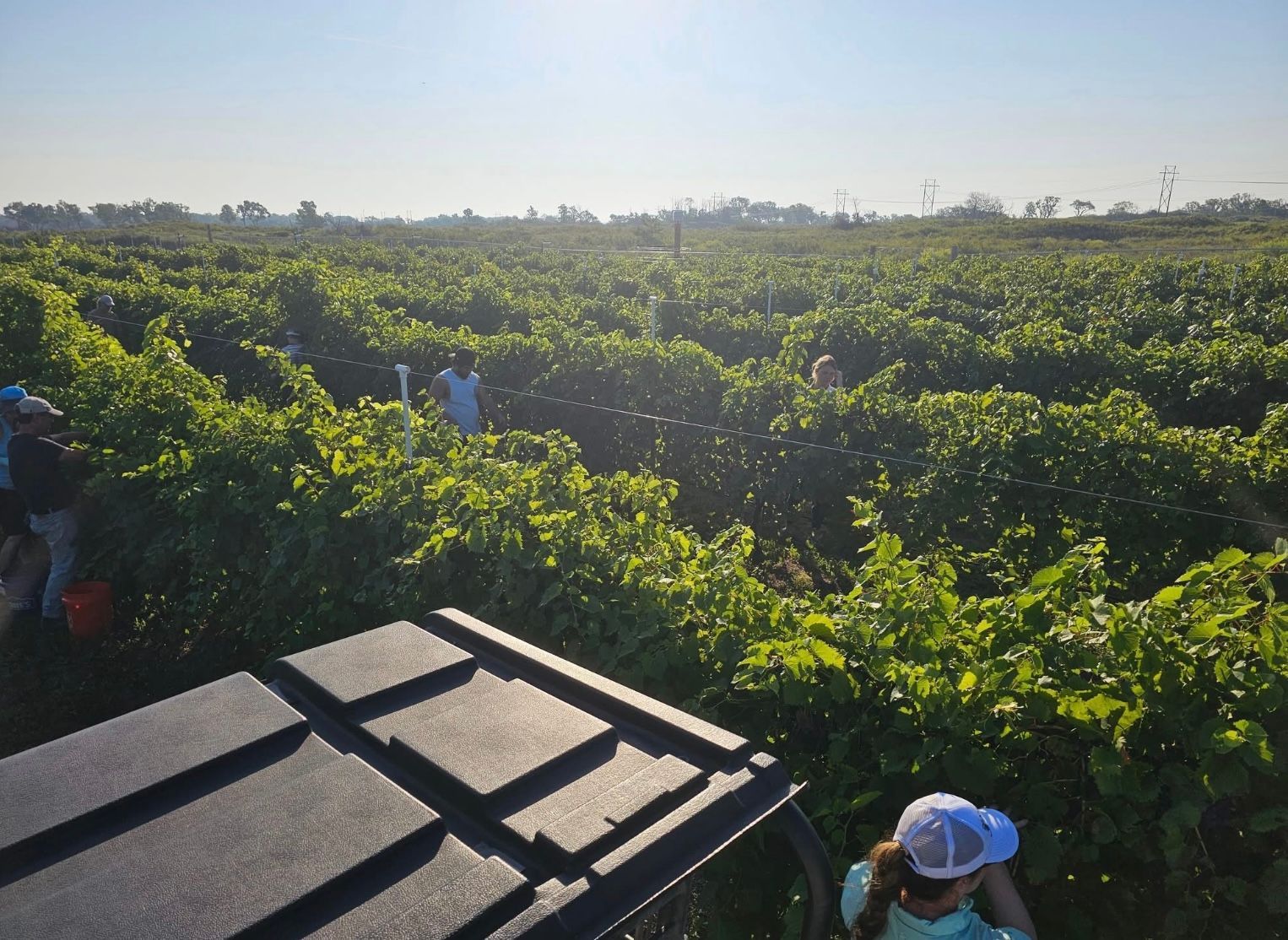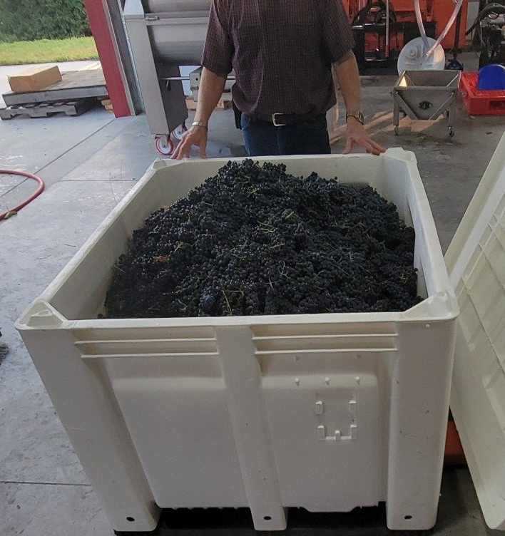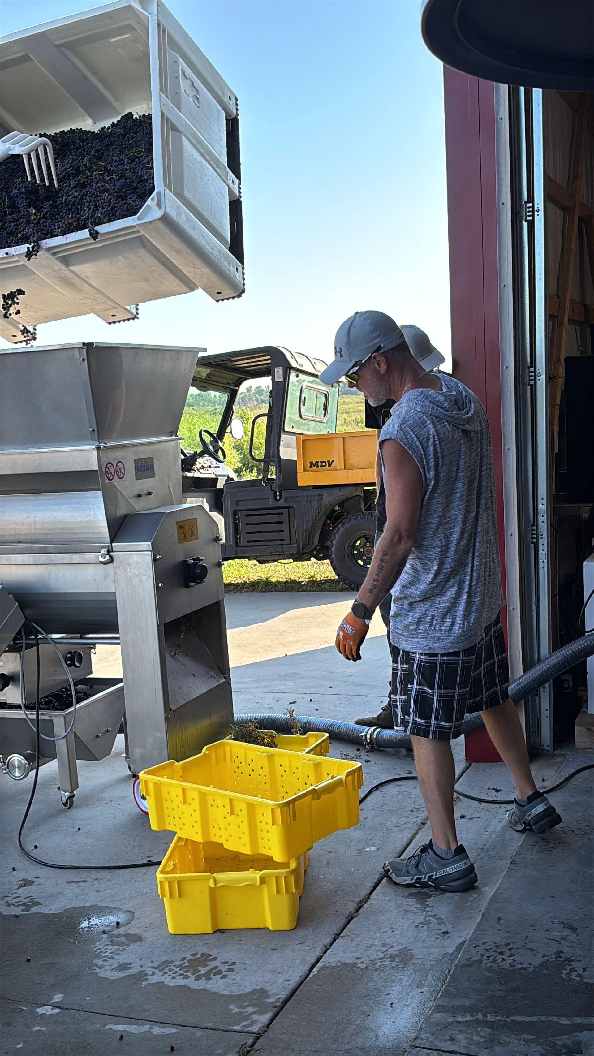The vineyard is on 2 acres, yielded 12,000 lbs. of grapes, which is about 3,400 bottles of wine. With the maturation of the late plantings, we are hoping for 15,000 lbs. of grapes - or about 3,750 bottles.